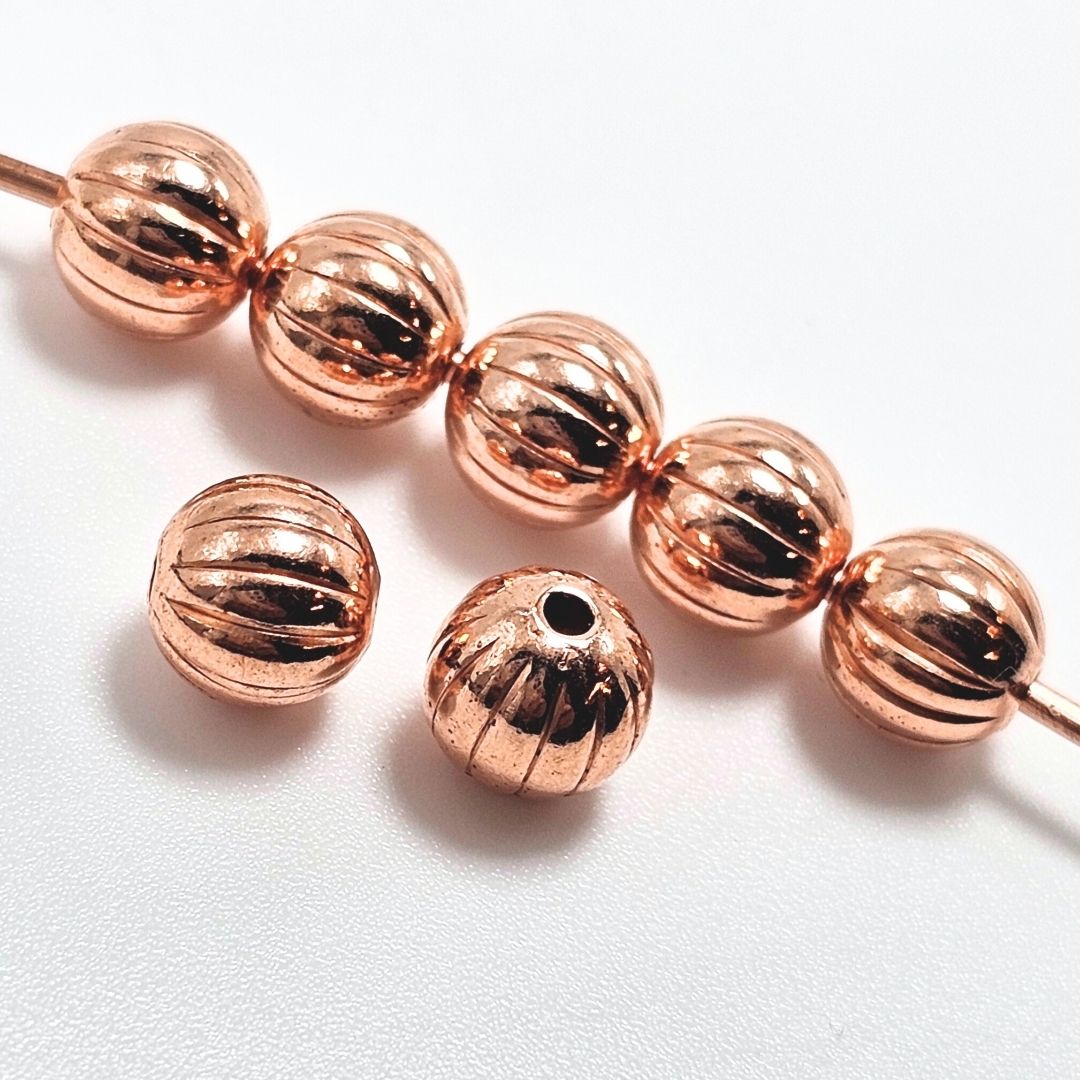 25 Copper Corrugated Round Uncoated Metal Beads (M) 8mm