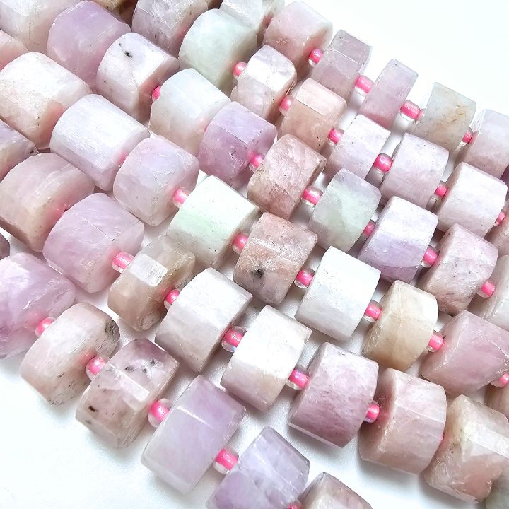 Kunzite Faceted Wheel Gemstone Beads (N) Approximate size 10 to 12mm, 4.6 to 8.2mm thick. 5 to 5.25 inches.