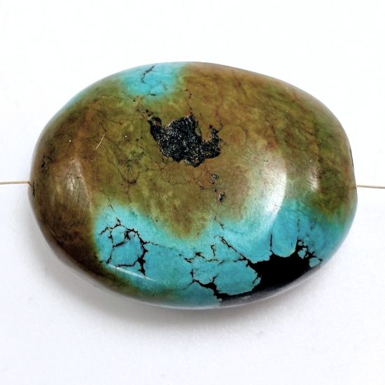 Hubei Turquoise Smooth Large Nugget Gemstone Bead (S) Approximate size 26.35 x 34.5mm, 16.3mm thick. One piece as shown.