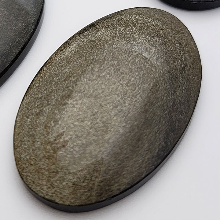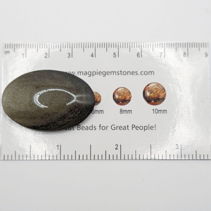 Golden Sheen Obsidian Oval Gemstone Cabochon (N) Approximate size 26.1 x 38.75mm to 27 x 39.8mm, 6.7 to 7.4mm thick. One piece.