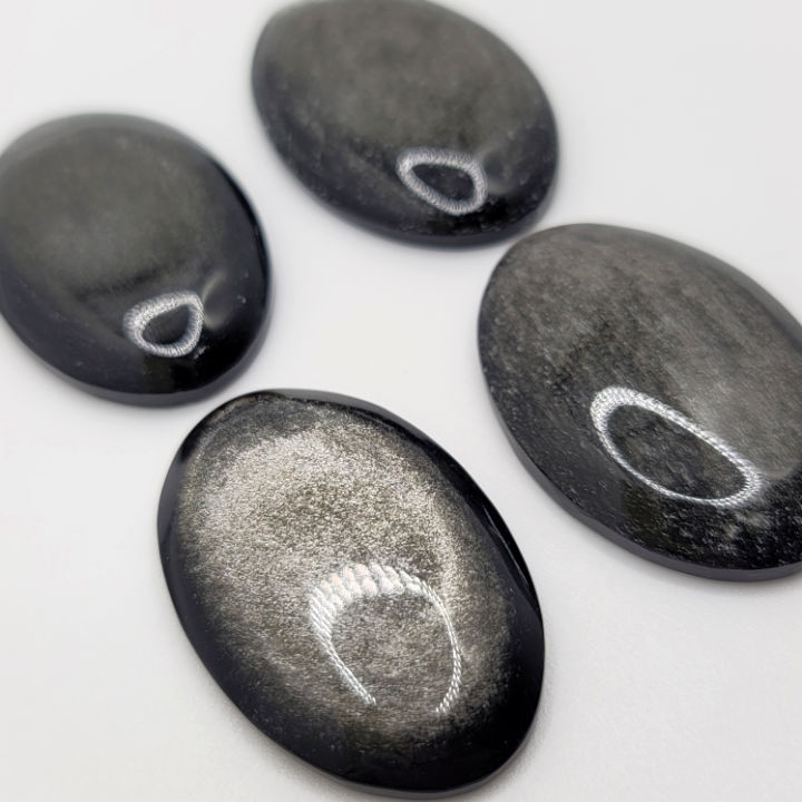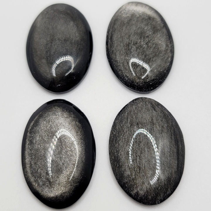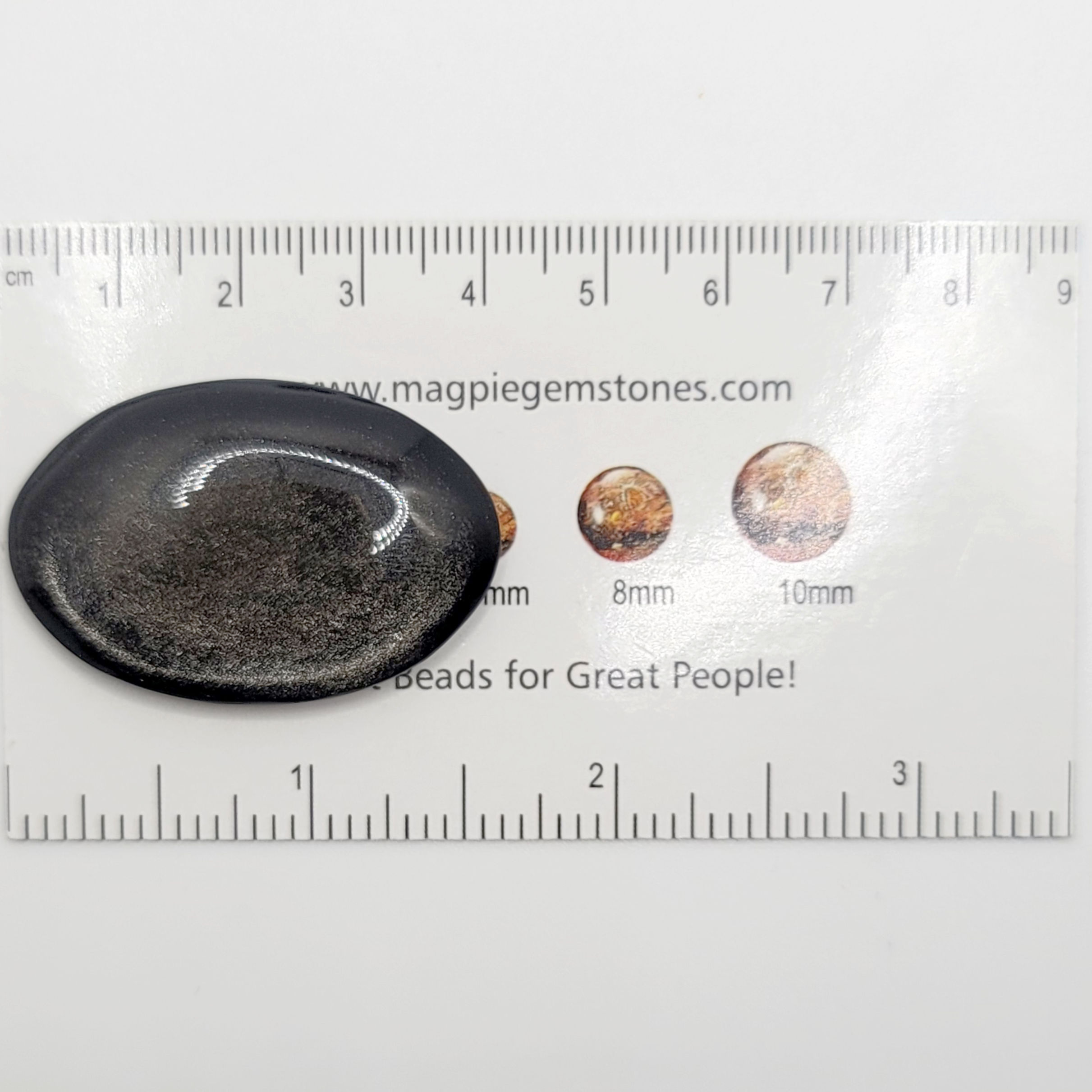 Silver Sheen Obsidian Oval Gemstone Cabochon (N) Approximate size 25 x 38mm to 27.5 x 40.45mm, 6.5 to 7.4mm thick. One piece.