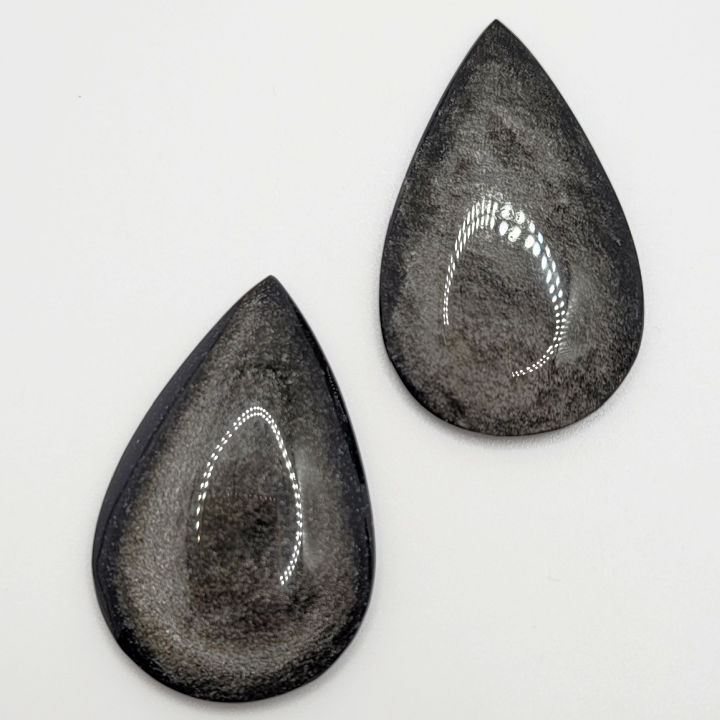 Silver Sheen Obsidian Teardrop Gemstone Cabochon (N) Approximate size 28.75 x 45mm to 30.4 x 47.2mm, 6.6 to 8.1mm thick. One piece.