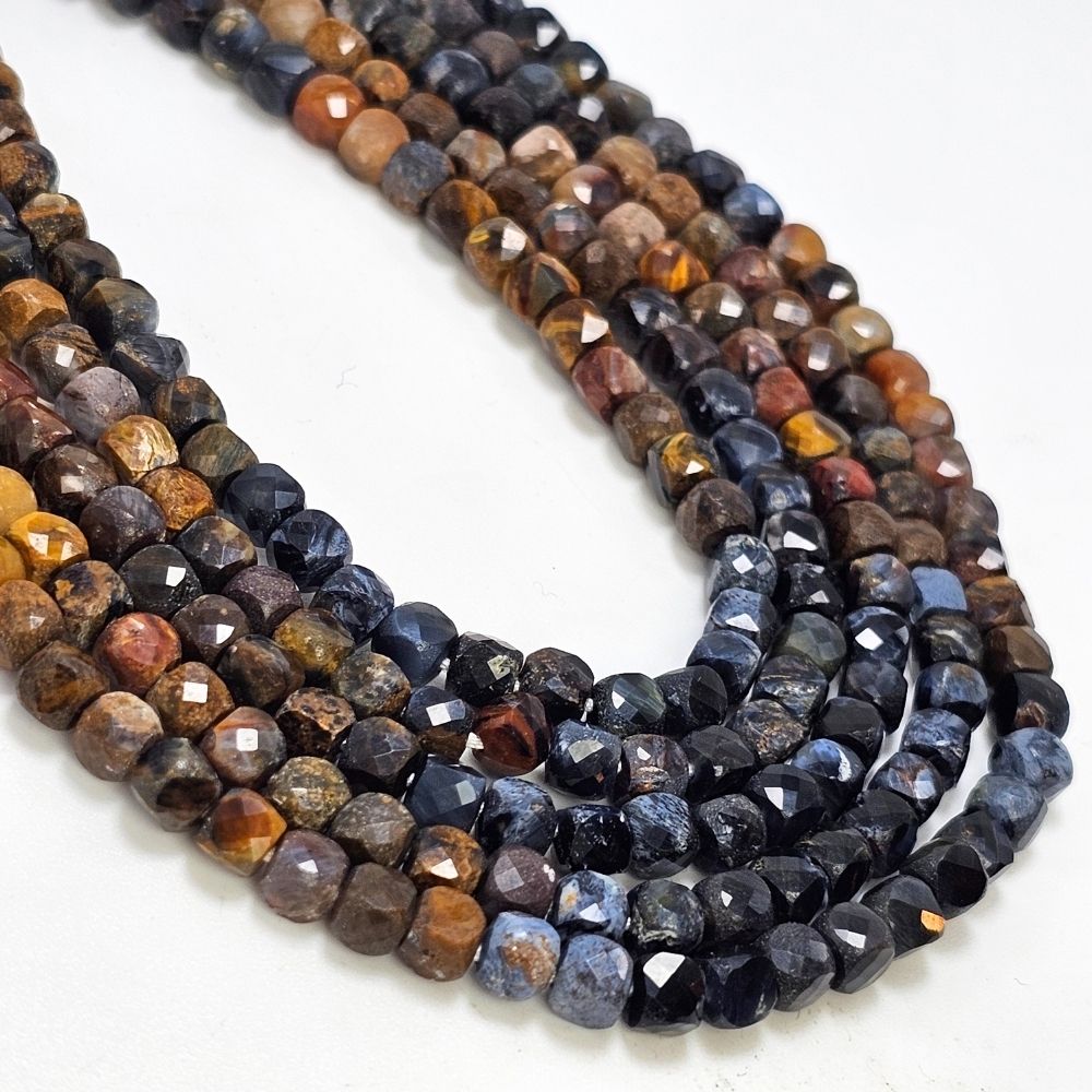 Pietersite Shaded Faceted Cube Grade A Gemstone Beads (N) Approximate size 4.1 to 4.6mm. 12.5 inches.