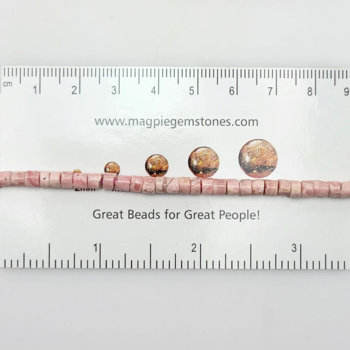 Rhodochrosite Heishi Gemstone Beads (N) Approximate size 3.8 to 4.6mm, 1.7 to 4mm thick. 16 inches.