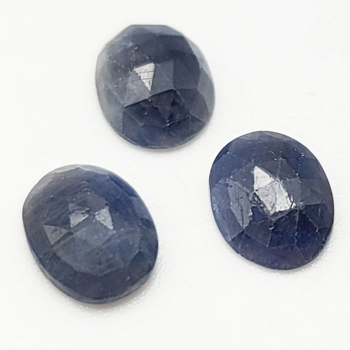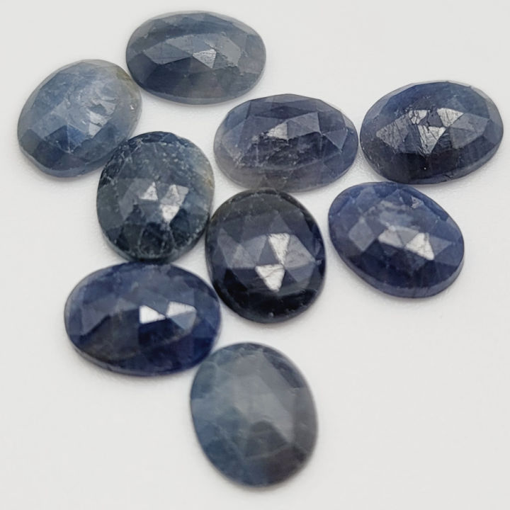 Sapphire Blue Oval Rose Cut Gemstone Cabochon (N) Approximate size 7 x 8.85mm to 7.3 x 9.24mm, 2.64 to 3mm thick. One piece.