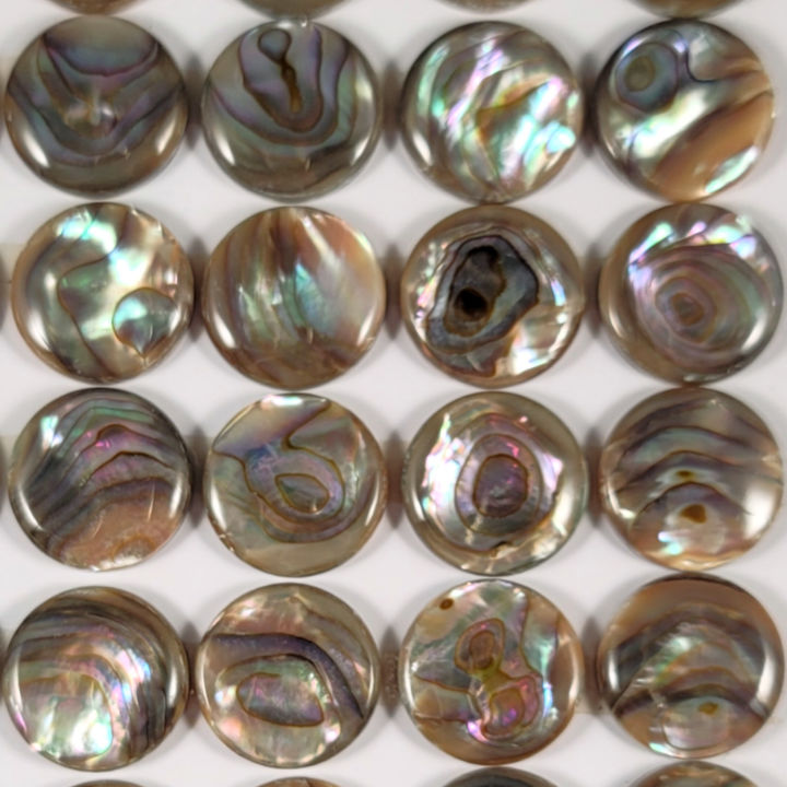 1 Mother of Pearl Round Cabochon (N) Approximate Size 18.1 to 18.25mm, 3.6 to 4.4mm thick. One piece.