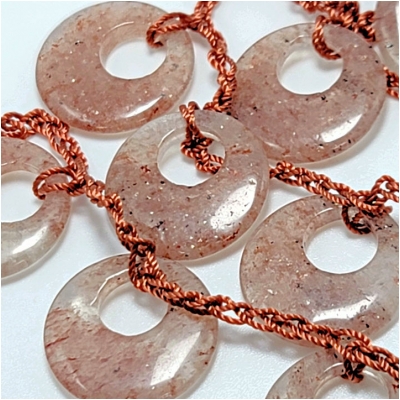 8 Sunstone Round Large Hole Gemstone Pendant (N) Approximate size 20.15 to 20.2mm, 3.1 to 3.8mm thick. Eight pieces. Hole is 8.2 to 8.5mm.
