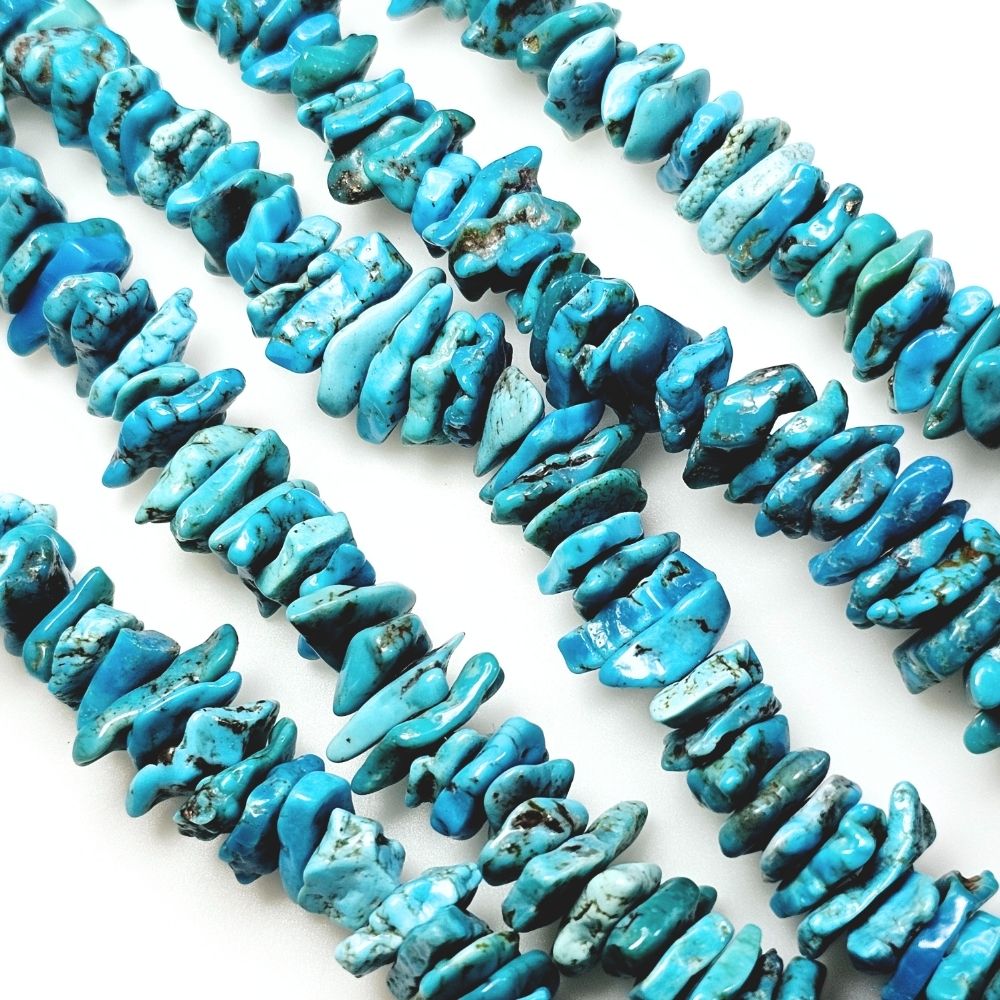 Kingman Turquoise Flat Center Drilled Chip Gemstone Beads (S) Approximate size 7 x 15.7mm, 1.8 to 4mm thick. 16.5 inches.